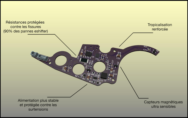 - Résistances renforcées qui ne craquent pas, c'est l'origine de 90% des pannes d'eshifter
