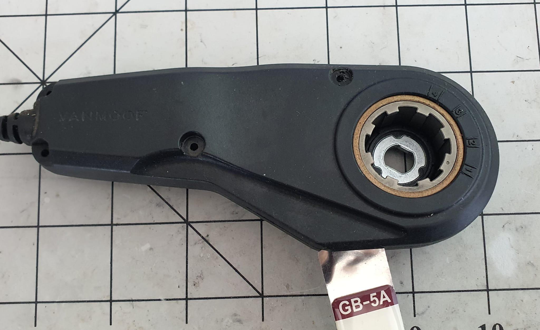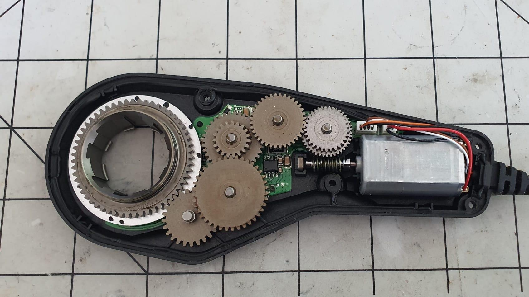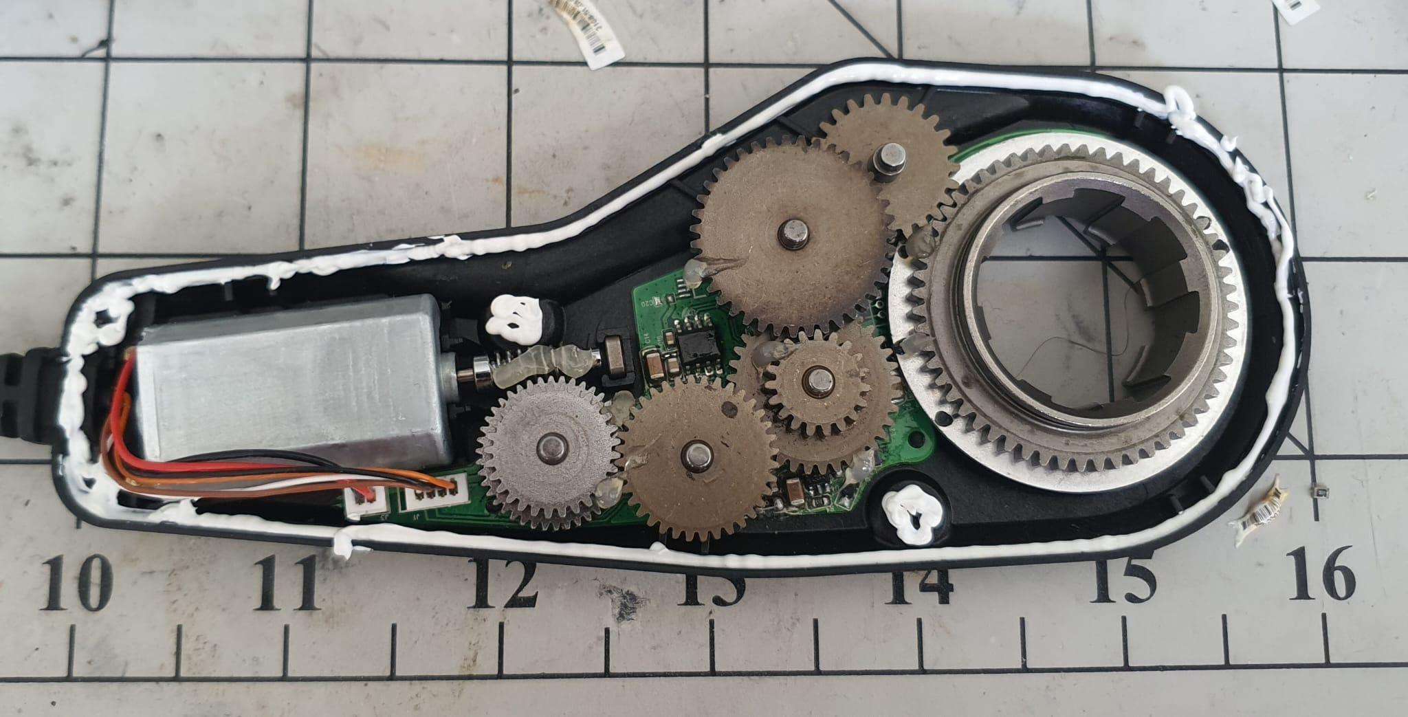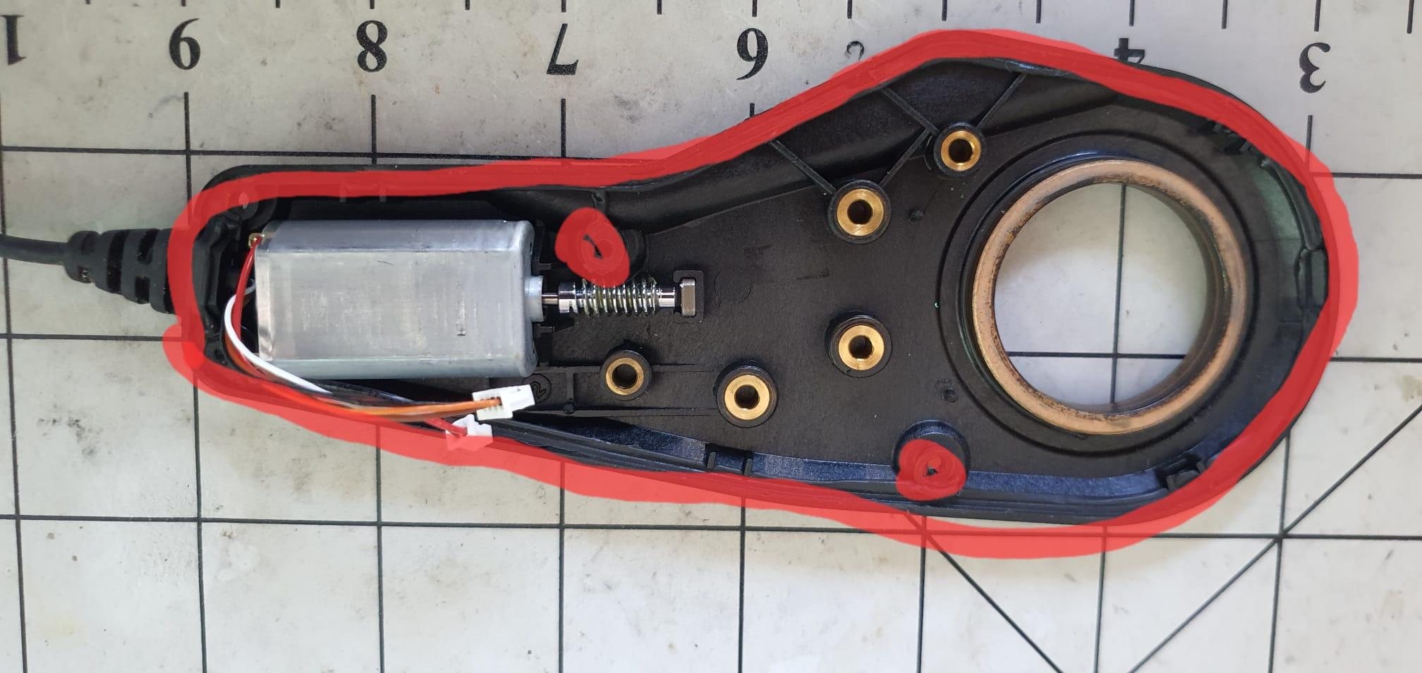 - apply the new gasket, it's white in the picture, don't miss the screw holes and close the eshifter / appliquer le nouveau joint, en blanc sur cette image, ne pas oublier les trous de vis et refermer le boitier