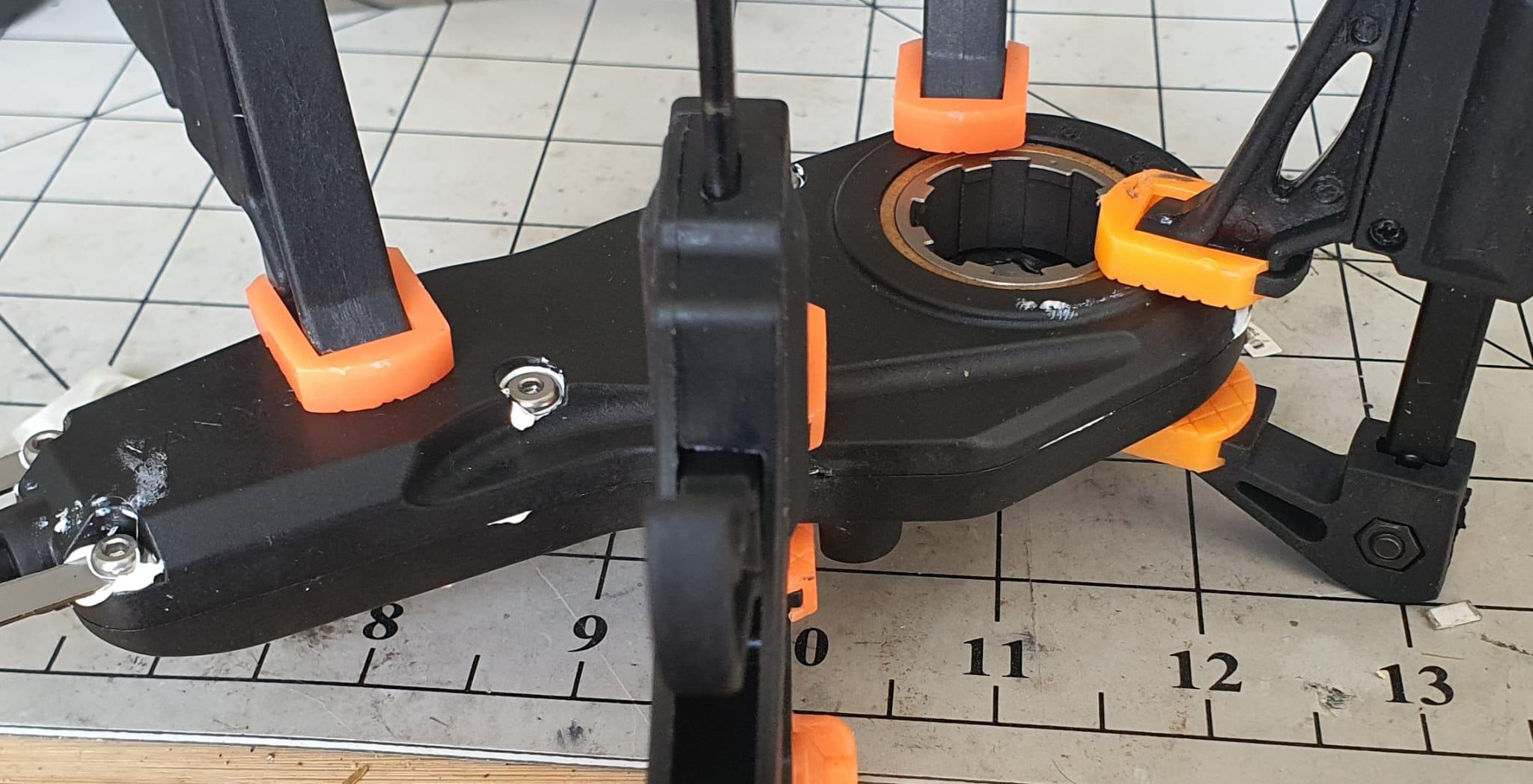 - clamp the eshifter for 1 hour, you can then clean it / appliquer les serre joint et laisser sécher pendant une heure, vous pouvez ensuite nettoyer votre eshifter
