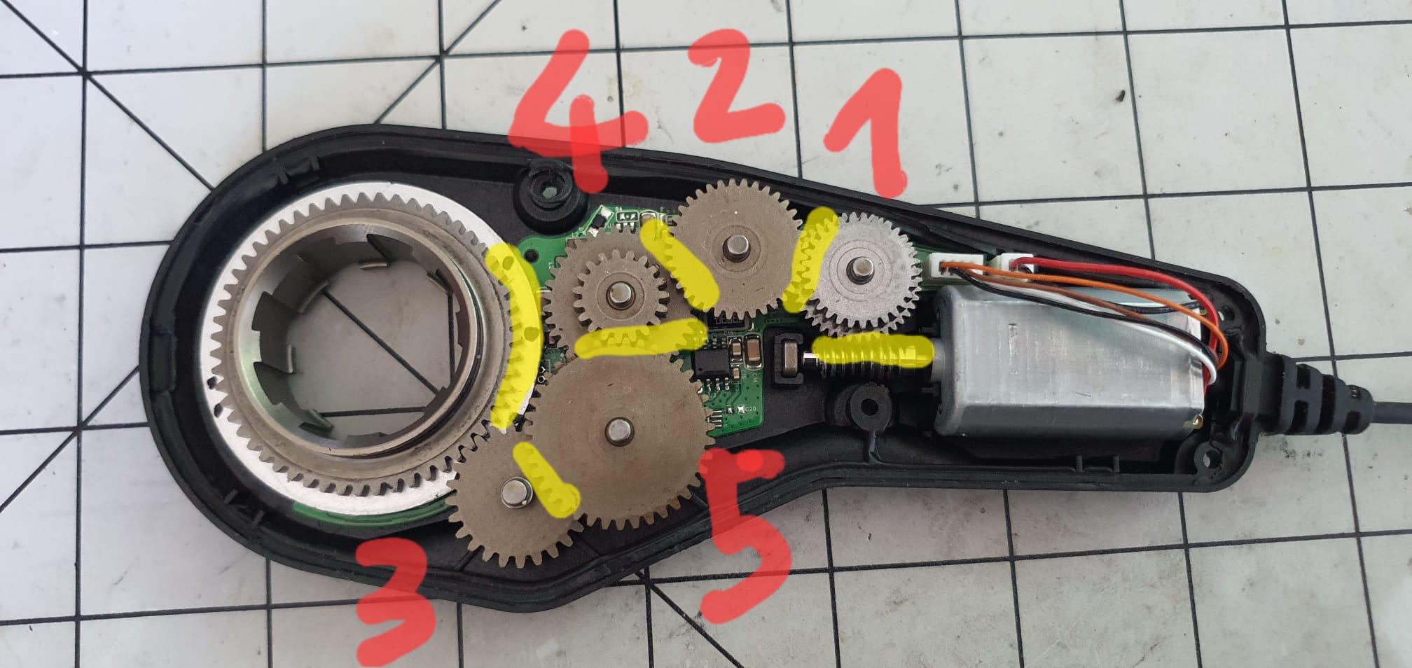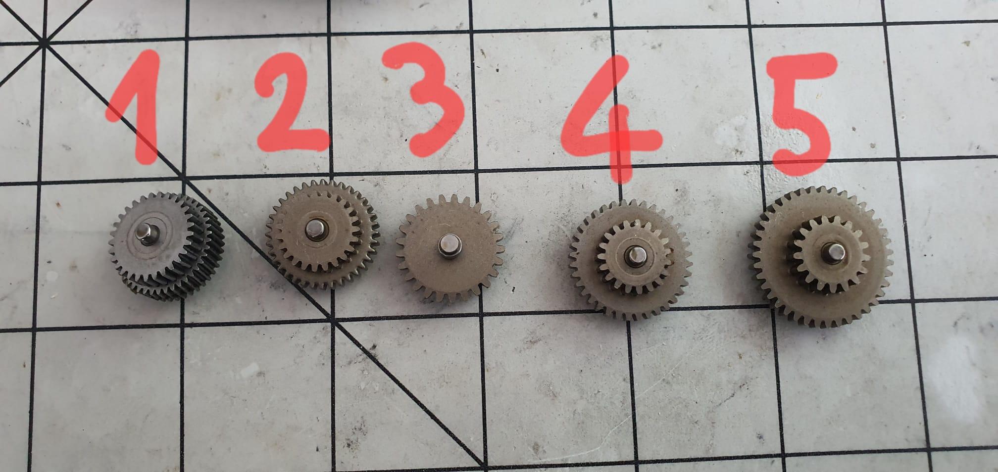 - install the smaller gears and put grease where indicated in yellow / installer les petits engrenages et graissez les zones en jaune